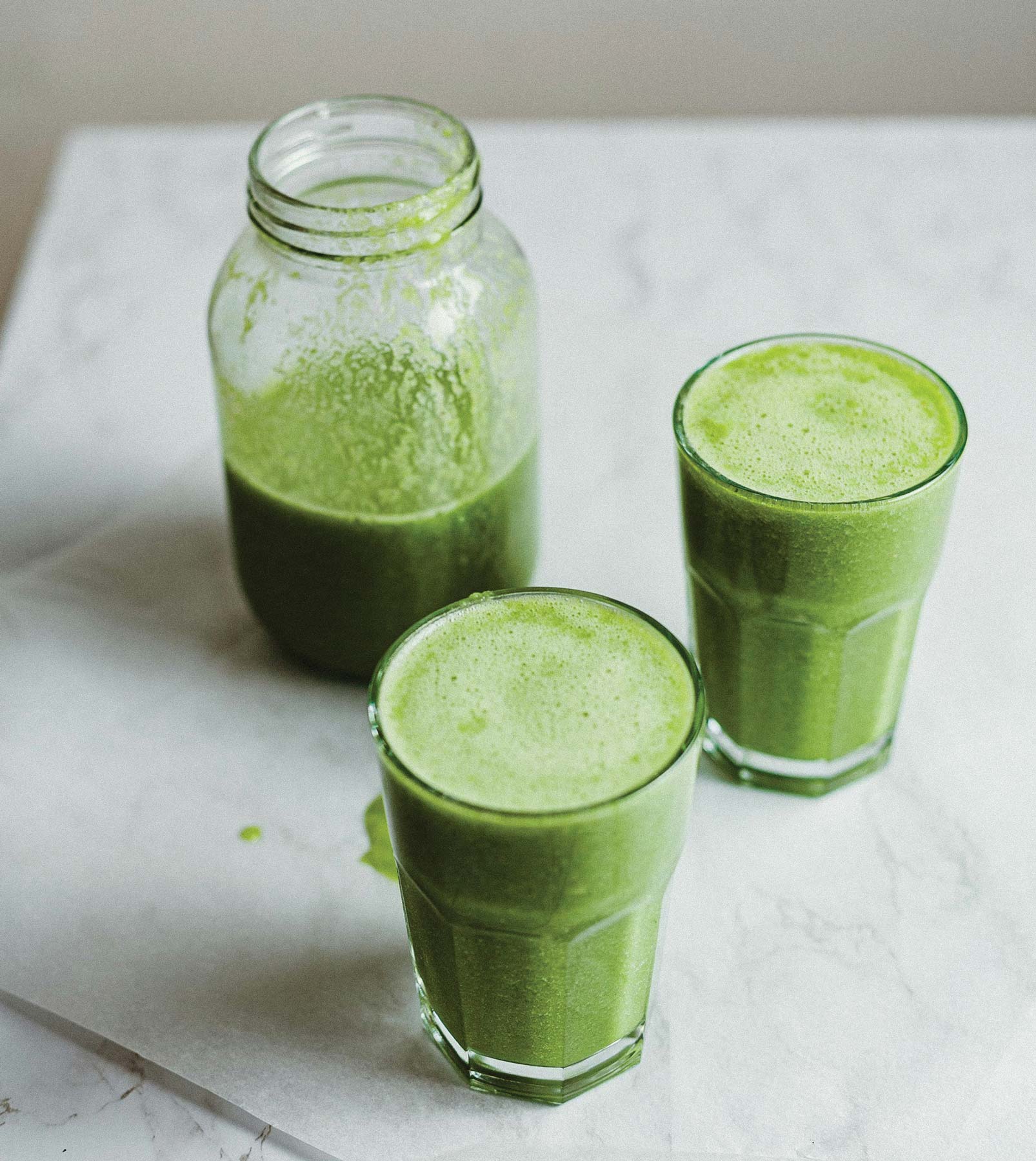 - Wash greens. In blender, blend spinach, apple, banana, dates, almond milk and chia seeds until smooth. Add cinnamon, if desired, and blend.