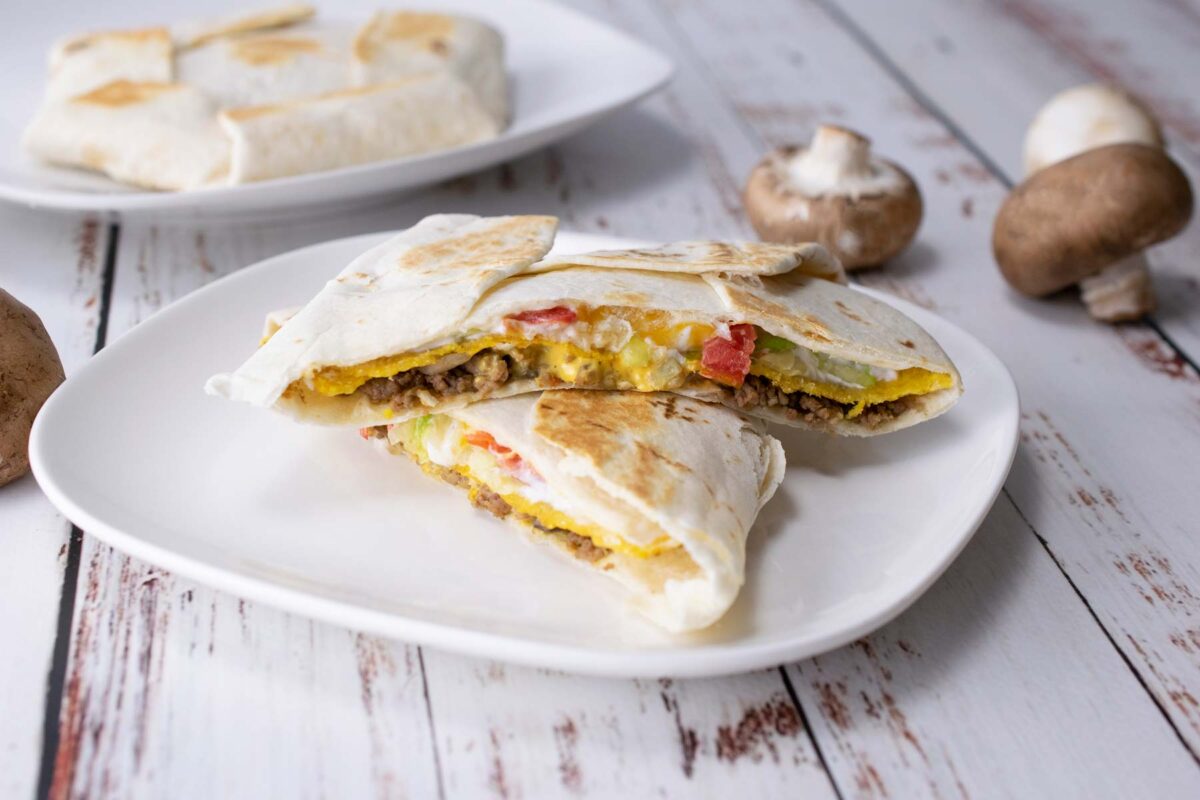 - Cut wraps half and serve.
