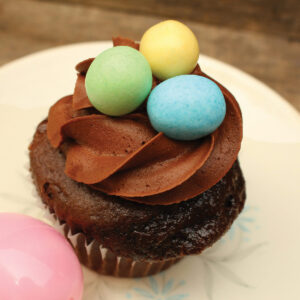 (Feature Impact) Once the Easter baskets are put away and the main course is cleared from the kitchen, you can liven up the dessert table or send guests off with a thoughtful treat thanks to these Chocolate Easter Egg Cupcakes. Moist cake, creamy frosting and chocolate-coated candies combine for a seasonal sweet that’s sure to impress.