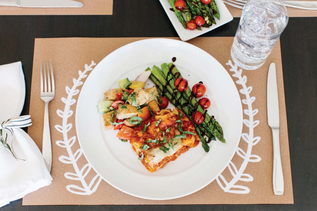 By pairing Stouffer’s Lasagna with Meat & Sauce, made with ingredients you would find in your own kitchen cupboard, with a homemade Panzanella Salad and Garlic Roasted Asparagus with Tomatoes and Balsamic, Stoegbauer demonstrates how easy it is to create a family-friendly meal without the hassle.